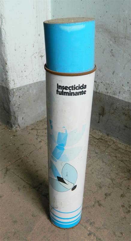 Realizando una inspección en una piso vacío, me encontré con un envase de insecticida doméstico de finales de la década de 1980. En el envase se puede leer el nombre comercial Flop. Desconocía esta marca. El piso lleva cerrado, según me informan, desde esos años. Adentrarse en el piso era retroceder 20 años, un poco una vuelta a la infancia.