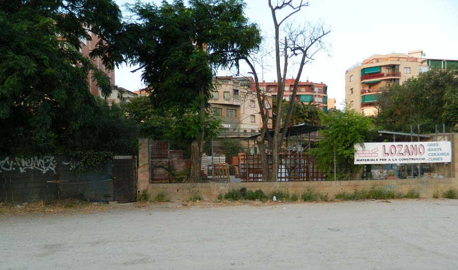 Fig 1. Al principio del paseo de la Pollancreda entre Santa Coloma de gramanet y San Adrián de Besós hay un huerto urbano (a la izquierda) y un almacén de una empresa de construcción (a la derecha)./ Desinsectador 08-2013