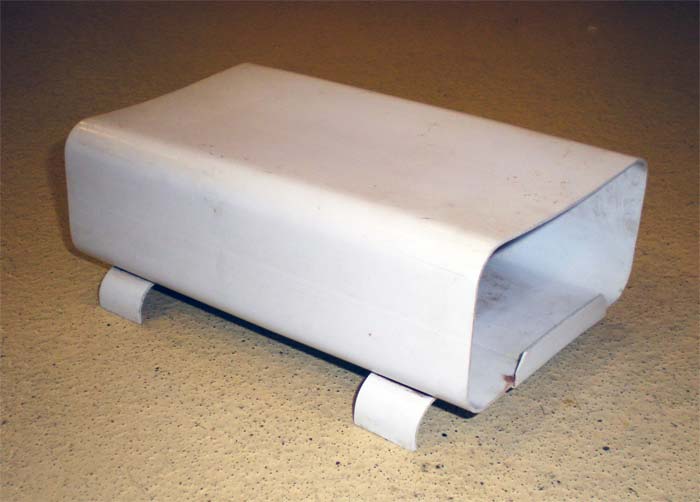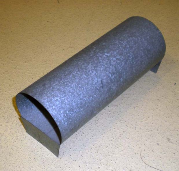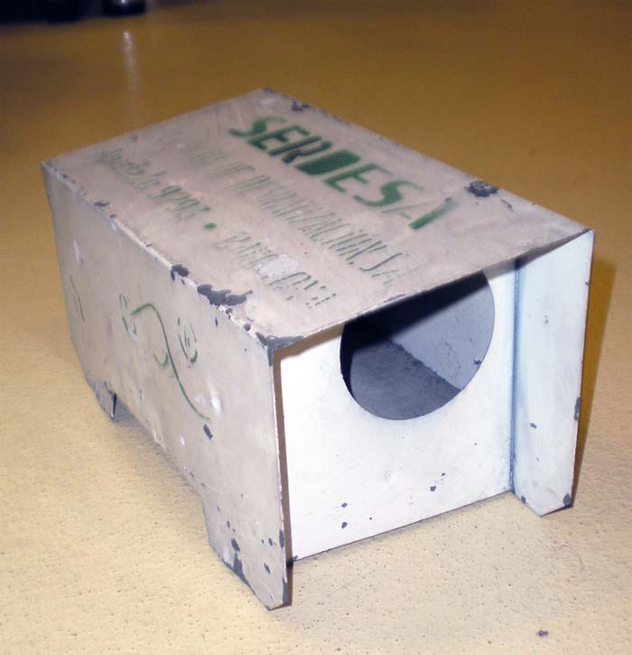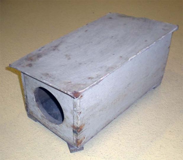 Figura 7. Cebadero de plancha metálica. 20 cm de largo, 9 cm de alto, 8 cm de alto. Forma de túnel.