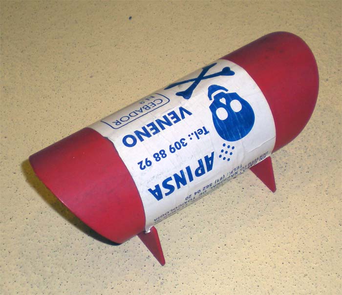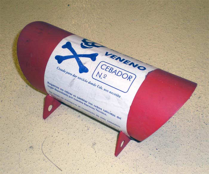 figuras 11 y 12. Cebadero de plástico rojo. 20 cm de largo, 8 cm de alto, 8 cm de ancho. Forma de túnel.