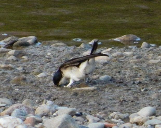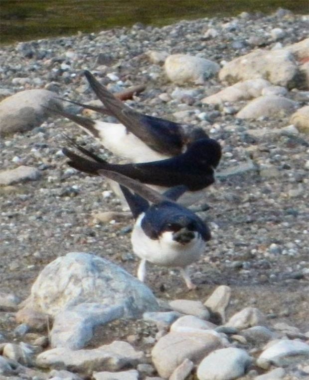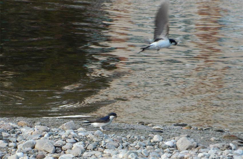 Fig 12. Avión común en el río Besós cogiendo pelotitas de barro. El que vuela ya lleva una para la construcción del nido./ C. Pradera 05-2013