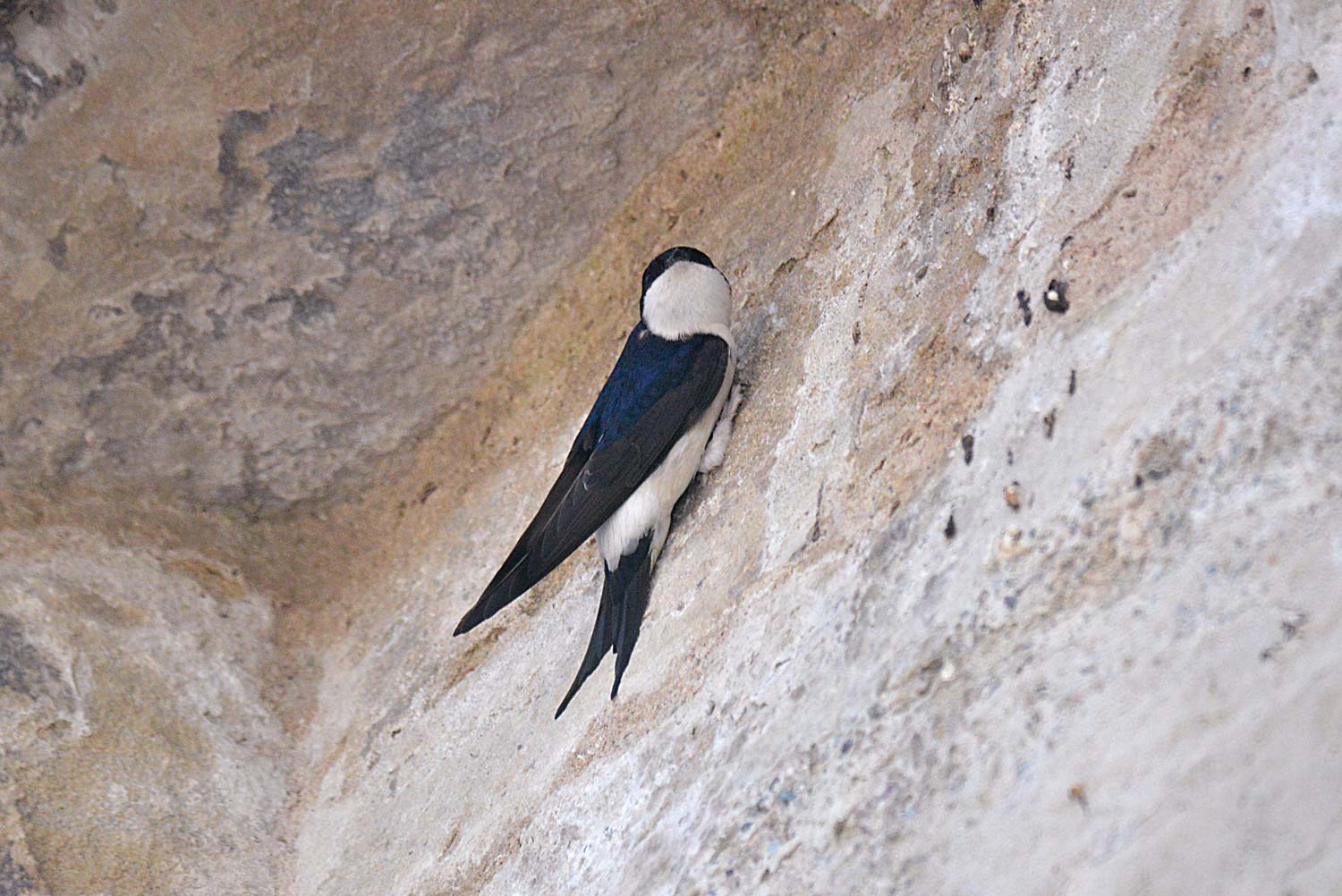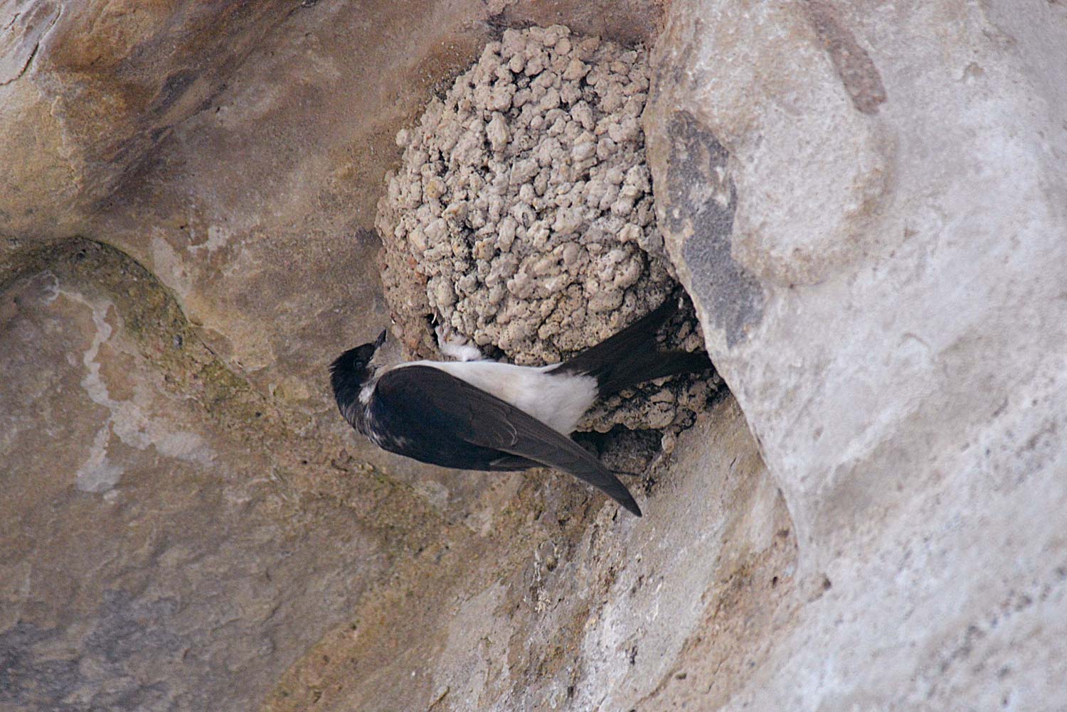 Fig 5. Avión común agarrado a una pared de la iglesia de Santa Coloma de Queralt (Tarragona)./ C. Pradera 05-2015