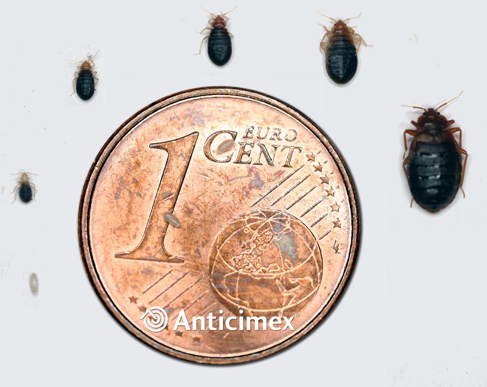 Hace un par de días publiqué un posteo sobre chinches de cama [1]. Comentaba que es una plaga que va cada día a más. El hecho de que se desarrolle en nuestras casas y no en espacios públicos hace que nuestras autoridades no realicen campañas públicas de información. Es posible que hace decenios las chinches estuvieran muy presentes en los países cálidos del sur de Europa. Pero hoy en día, hay tantos casos de infestación en hoteles y viviendas el norte de Europa como en el sur. Es más fácil pasar frío en una casa de España en invierno que en una casa de Suecia. En los países del norte saben muy bien como resguardarse del frío. Las casas están bien atemperadas y las chinches proliferan. En España, en cambio, como que son unos pocos meses de frío, pues nos preocupamos un poco menos de acondicionar nuestros hogares. Esto quizás implique que haya menos tratamientos de chinches en domicilios particulares, pero más en hoteles donde la temperatura es constante a lo largo del año. Al poco de publicar el posteo de hace dos días, David Mora [2] me envió un par de fotos donde se pueden ver los diferentes estadios de crecimiento de las chinches . Lo bueno de las fotos es que aparece una moneda de un céntimo para que sirva de comparativa del tamaño. Así pues, las chinches asedian Europa.