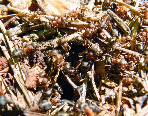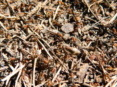 Fig 3. Hormigas de la especie Formica lugubris sobre el hormiguero en La Molina (Gerona)./ Desinsectador 08-2103