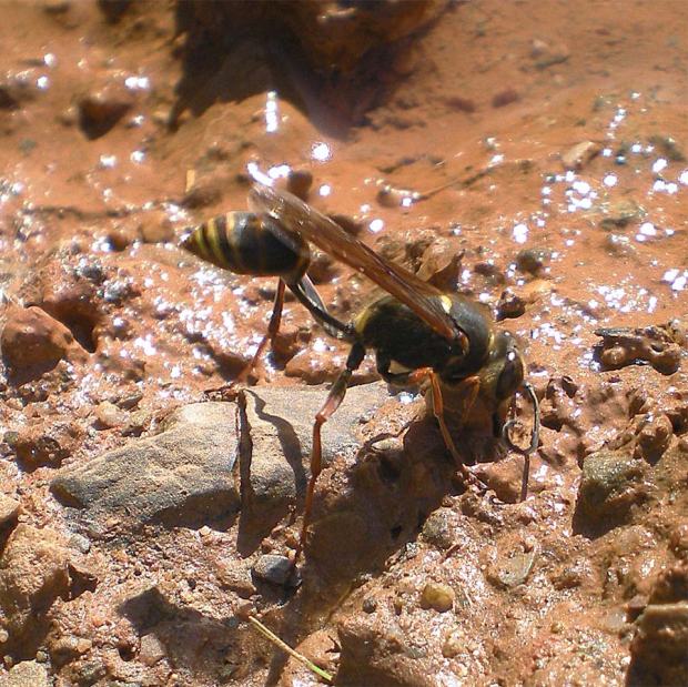 Las imágenes fueron tomadas en el mes de agosto del año pasado. Recuerdo que aparqué la furgoneta en un descampado de la calle Ramon Llull de Sant Adrià de Besòs cerca del Fórum. Al poner los pies en el suelo, vi un par de avispas que estaban junto a un charco. Se encontraban recogiendo barro para construir las celdas. Así que saqué la cámara y tomé unas fotografías, pero no ha sido hasta este año que mi atención ha vuelto a ellas.