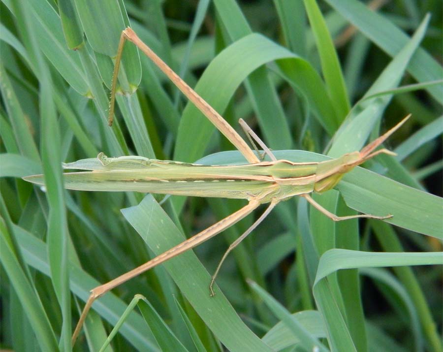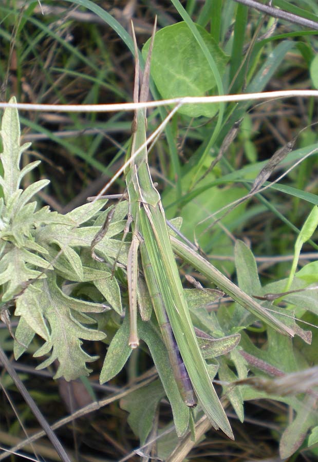 Otra manera de saber la especie es tener en cuenta su distribución. En la Península Ibérica, Truxalis nasuta se encuentra en el centro y en el sur. Mientras que Acrida ungarica es más corriente en el norte y en la costa mediterránea. En Cataluña, por ejemplo, se encuentran ambas especies. Truxalis nasuta está en la provincia de Lérida, mientras que Acrida ungarica la encontramos en la zona litoral. Una última manera de determinar la especie es observando cuándo aparecen los adultos. Según los manuales, los adultos de Truxalis nasuta están presentes en junio. En cambio, los de Acrida ungarica se dejan ver de julio a noviembre. Esto concuerda con algunas fotos de esta entrada que fueron hechas en el mes de octubre. Parece ser que la hembra sobrevive mayor tiempo al macho. Por lo cual, en el otoño se verán básicamente hembras. Espero que las fotos sean ilustrativas.