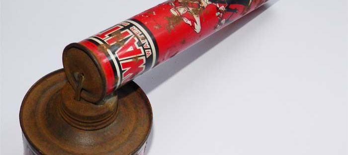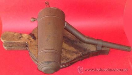 Estos aparatos pulverizadores, como he comentado, estaban pensados para formulaciones líquidas donde el insecticida estaba disuelto en petróleo refinado. La pulverización de líquido insecticida representó un avance respecto del espolvoreo de polvos, que fue la primera manera de dispersar un insecticida en un ambiente. Este avance fue tan importante como la aparición de la dispersión en forma de aerosol mediante botes de espray a principios de la década de 1960. El gas propelente contenido en los botes de espray expulsa el líquido rompiéndolo en finísimas gotas. De la dispersión de polvo se pasó a la de líquido. Y de la del líquido en gotas gruesas a la de gotas finas mediante botes de esprays. Curioseando en una página web de artículos de coleccionismo llamada Todocolección [3], he encontrado algunos espolvoreadores de finales del siglo XIX. En las imágenes 4, 5 y 6 se puede ver un fuelle de la casa comercial Caubet [4].