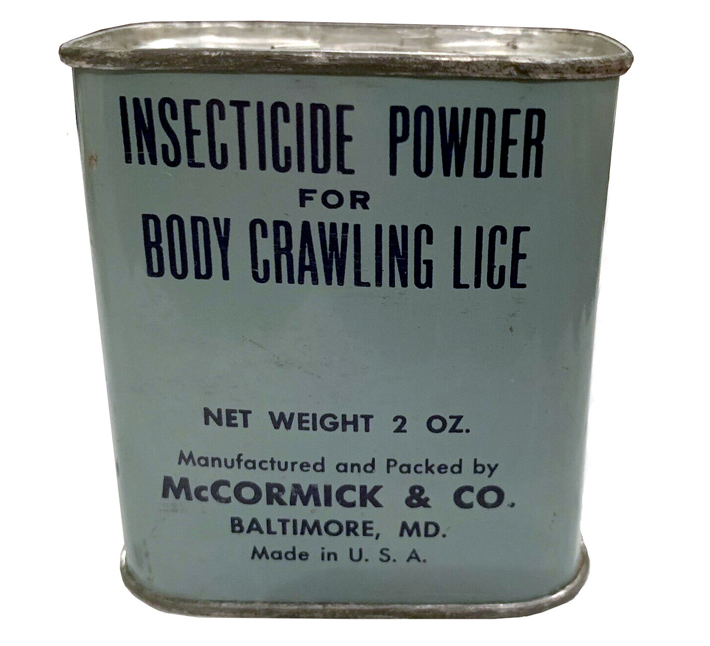 Según tengo entendido, a partir del año 1943 todo soldado recibió una lata con 2 onzas de polvo insecticida con DDT para el control de piojos, los cuales hacían estragos entre la tropa. Gracias a estos polvos, los soldados americanos pudieron poner a raya a los piojos del cuerpo, los cuales eran transmisores de enfermedades como el tifus exantemático o la fiebre de las trincheras que podían llegar a paralizar un ejército. En el pasado muchas guerras se perdieron por los piojos. Tantos hombres juntos y hacinados en malas condiciones eran un terreno fértil para la proliferación de parásitos.