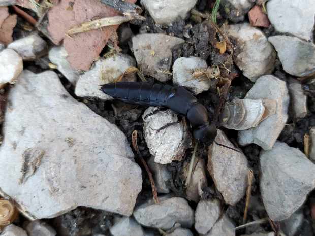 Fig 7. Escarabajo errante, Ocypus olens, en Barcelona./ C. Pradera 10-2020