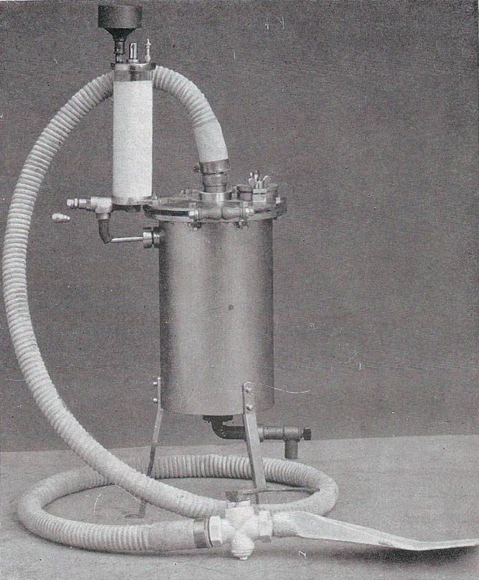 Fig 10. El pie de la foto dice: «Especial para la fumigación de locales pequeños en hoteles, fondas, pensiones, cárceles, etc., así como para cámaras fijas destinadas a la esterilización de granos, pastas alimenticias, etc.» (página 77).