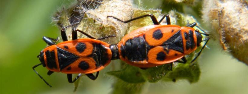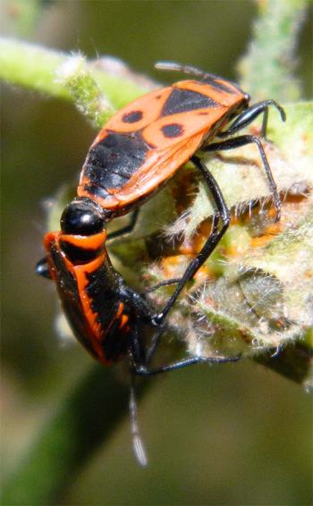 Fig 1. Cópula de chinches de las malvas (Pyrrhocoris apterus)./ C. Pradera 08-2013