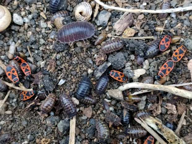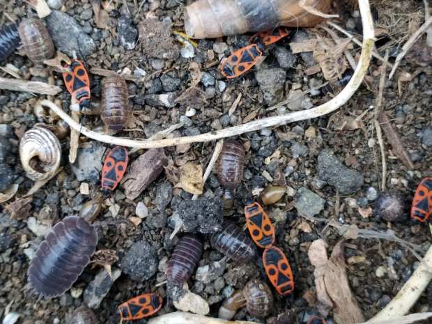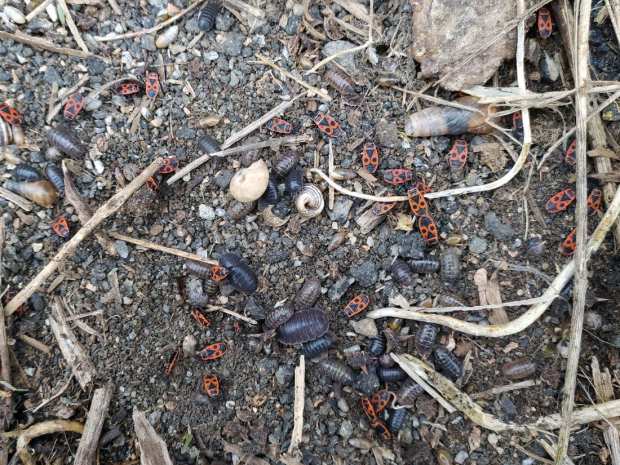 Fig 5. Adultos de chinche de las malvas (Pyrrhocoris apterus)./ C. Pradera 04-2021