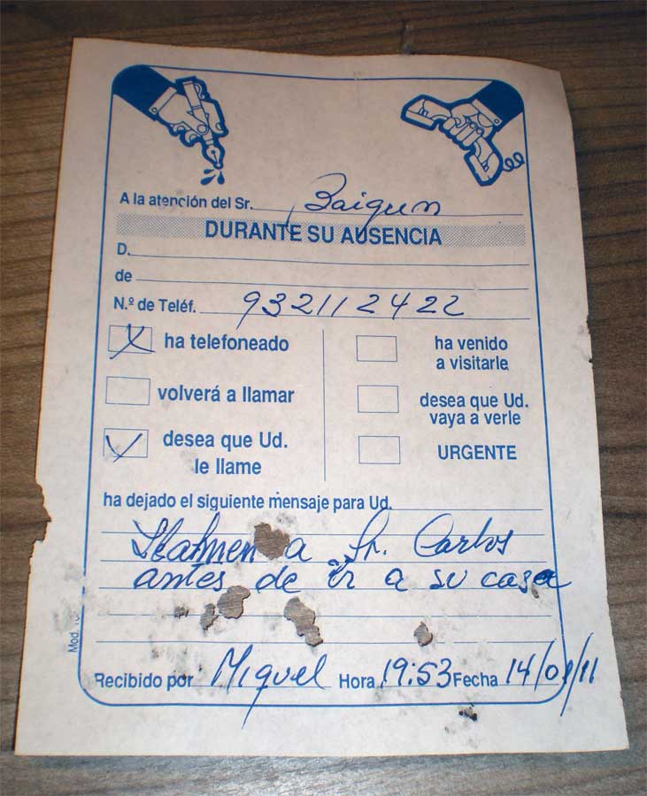 Además de estos coleópteros, abundan en las habitaciones los pececillos de plata (Lepisma saccharina, Ctenolepisma longicaudata) [2]. En la fotografía número 3 se puede ver un papel que me encontré debajo de una mesita de noche que llevaba un par de años allí. Se pueden ver unos agujeros en la parte inferior que han sido hechos por el hambre de los pececillos. Otros artrópodos habituales son las arañas. En la fotografía número 4, se puede ver una araña escupidora (Scytodes univittata) [3]. Esta salía del hueco de pladur al retirar hoy una mesita de noche. Cerca tenía larvas de Attagenus. Para acabar, comentar que estos días he recogido bastantes larvas de un mismo hotel. Las he puesto en un bote con comida que espero les guste. Vamos a ver si consigo que se transformen en escarabajos. En las fotografías 5 y 6, se pueden ver algunas de las larvas que me he llevado.