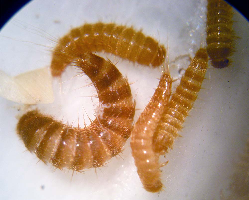Te escribo para ver si me podrías ayudar, este fin de semana al limpiar debajo de la cama he vistos estás larvas que dices son del escarabajo negro de la alfombra, he limpiado la habitación de arriba a abajo, pero me he dado cuenta que también están en otras estancias de la casa.