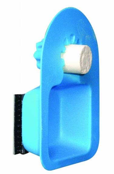 En la imagen número 1 se puede ver un dispensador de Exosex SPTab. Consiste en un plástico preparado para aguantar un pequeño cilindro de polvo. Según los manuales, estos dispensadores se deben disponer en retícula cubriendo cada uno un área de 5 x 5 metros. Esto es la teoría. Luego uno se encuentra en la realidad de un local que hay maquinaria pesada de por medio, puertas y ventanas, corrientes de aire, etc.