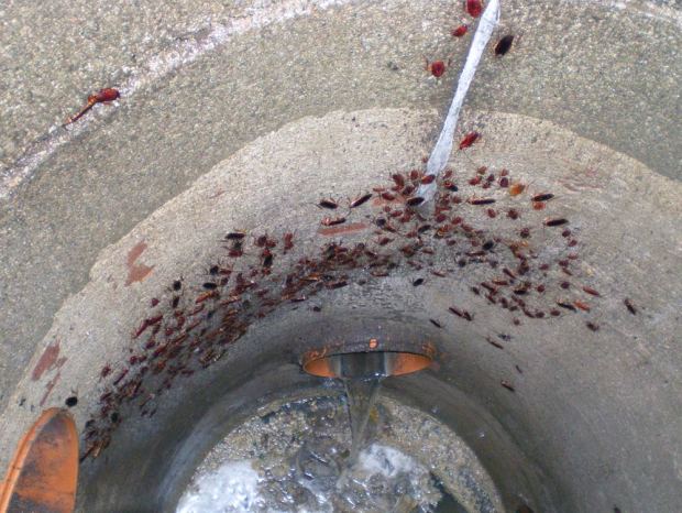 Fig 5. Muchas cucarachas en un pozo de alcantarillado./ C. Pradera 11-2013