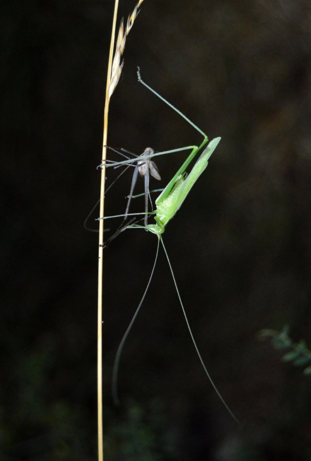 Encontré por la noche, en las plantas que crecían junto a un camino, individuos del ortóptero Tylopsis lilifolia. Según Josep Maria Olmo-Vidal [1]. Se trata de una especie poco común pero con una amplia distribución por todo Cataluña. Se la puede encontrar por gran parte de Europa, pero donde está muy presente toes enda la región mediterránea. Como se puede ver en las imágenes tiene un aspecto característico.