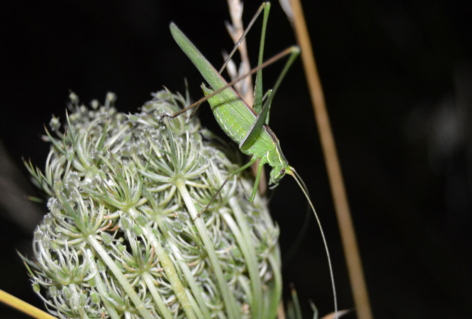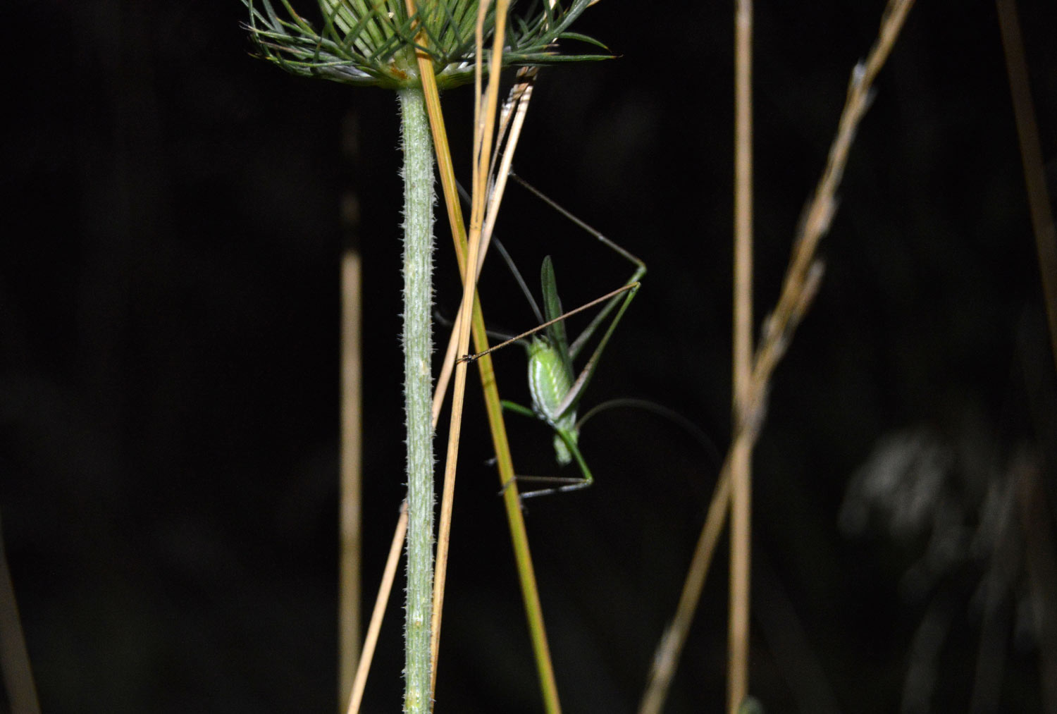 Encontré por la noche, en las plantas que crecían junto a un camino, individuos del ortóptero Tylopsis lilifolia. Según Josep Maria Olmo-Vidal [1]. Se trata de una especie poco común pero con una amplia distribución por todo Cataluña. Se la puede encontrar por gran parte de Europa, pero donde está muy presente toes enda la región mediterránea. Como se puede ver en las imágenes tiene un aspecto característico.