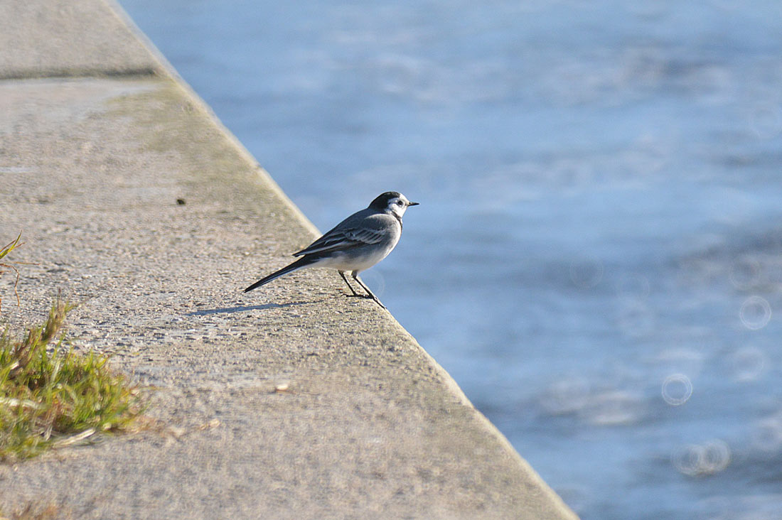Foto 1. Lavandera blanca macho con plumaje de invierno posada sobre el margen del río Besós./ Desinsectador 12-2013