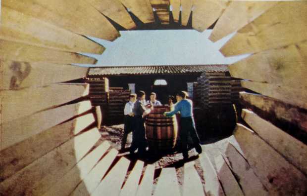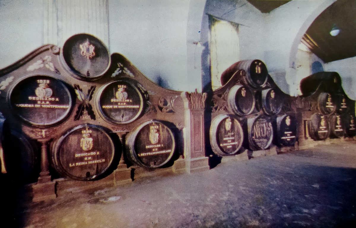 Fig 3. En el reverso: «BODEGA DE LOS REYES, donde se conservan toneles firmados por ilustres personalidades que en distintas fechas visitaron estas bodegas»./ Luis Diez Sierra