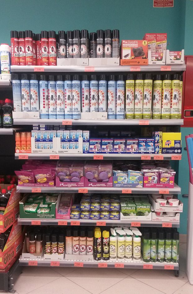 Fig 4. Estantería con productos domésticos de control de plagas./ C. Pradera 2015