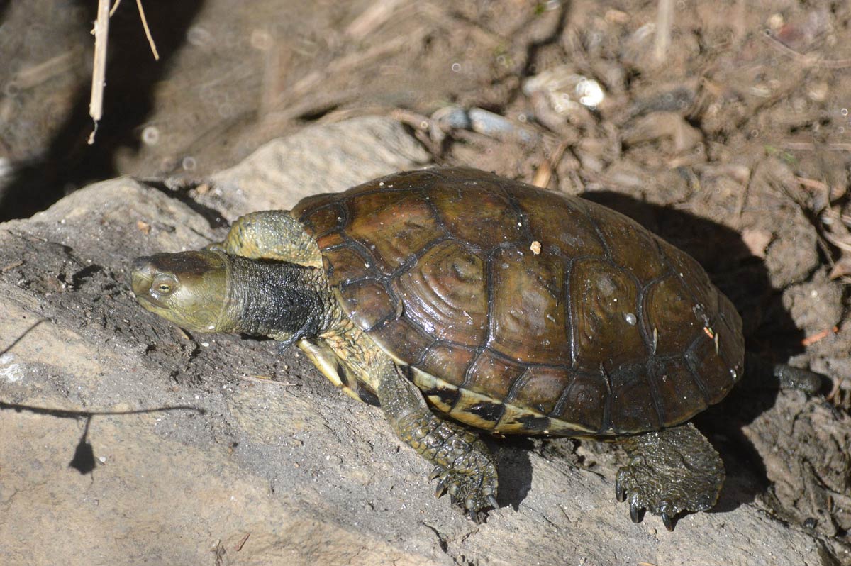 Junto a la tortuga de orejas rojas, encontré dos tortugas de diferente aspecto. Una tenía un aspecto saludable (foto 4 a 6). Otra parecía que estaba enferma y no se inmutó por mi presencia (foto 7). Creo que se trata de ejemplares de galápago leproso, una especie autóctona de la Península Ibérica. Por lo que he estado leyendo, hay constancia de poblaciones de esta tortuga en la parte alta del río. Es un lujo poder encontrarla cerca de casa. Esto significa que el río se está recuperando más rápidamente de lo que se creía tras decenios de contaminación. Ya he comentado que el río Besós fue considerado uno de los ríos más contaminados de Europa. Como la tortuga de orejas rojas es omnívora. Aunque principalmente es carnívora. Ambas especies compiten por un mismo espacio. El galápago leproso es una especie protegida. Según los manuales, otra tortuga que se puede encontrar en este río es el galápago europeo, Emys orbicularis. Se trata de una especie endémica, aunque yo no la he visto en la zona baja del río.