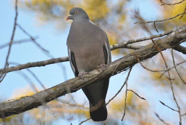 Fig 1. Paloma torcaz (Columba palumbus) posada en una rama en Santa Coloma de Gramanet, Barcelona./ Desinsectador 12-2013