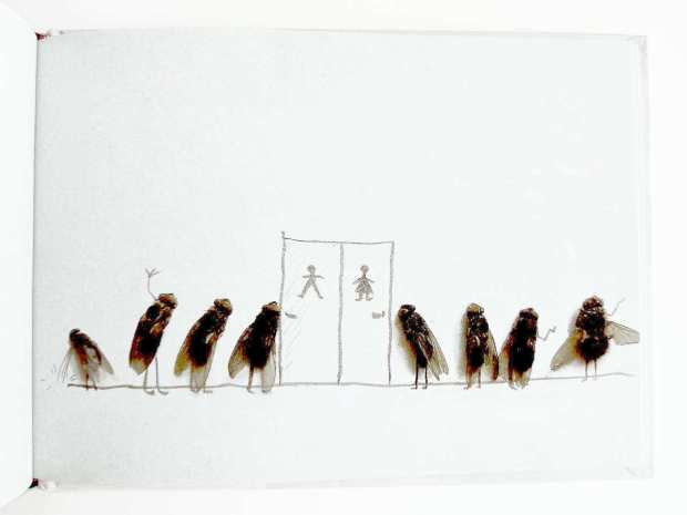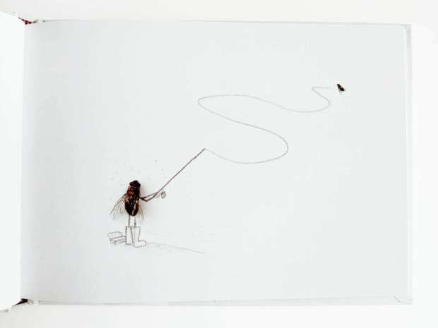 Me ha sorprendido este libro del fotógrafo Magnus Muhr. Es un libro de humor hecho con moscas muertas y con mucha imaginación. Cada página es una sorpresa hecha con sencillos dibujos a lápiz para crear un cuadro alrededor de las moscas. Cuelgo algunas imágenes del libro para dar cuenta de la capacidad de su autor. Si se quieren ver más láminas, tan solo hay que poner el nombre del autor en un buscador. También se puede adquirir. Tiene un precio económico.