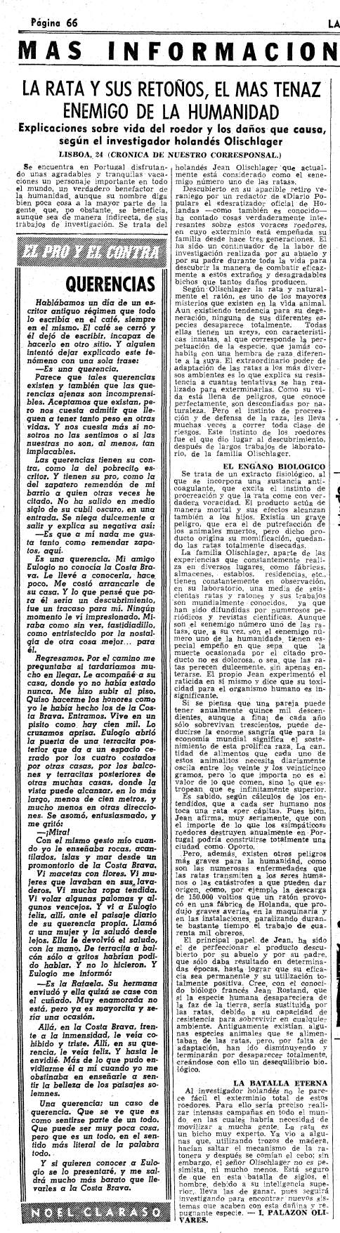 [3] Corresponsal. 25-06-1968. La rata y sus retoños, el más tenaz enemigo de la humanidad. La Vanguardia. Página 66.