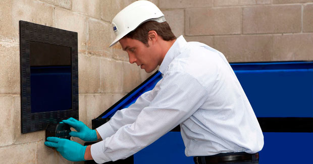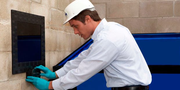 Fig 1. Un técnico de control de plagas de Ecolab insertando el paquete odorífero en el Stealth Fly Station./ Ecolab 2014
