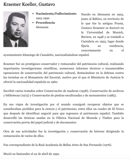 Fig 3. Ficha de Gustavo Kraemer Koeller en Escritores Cántabros. Enlace: escritorescantabros.com/escritor/kraemer-koeller-gustavo.htmlescritorescantabros.com