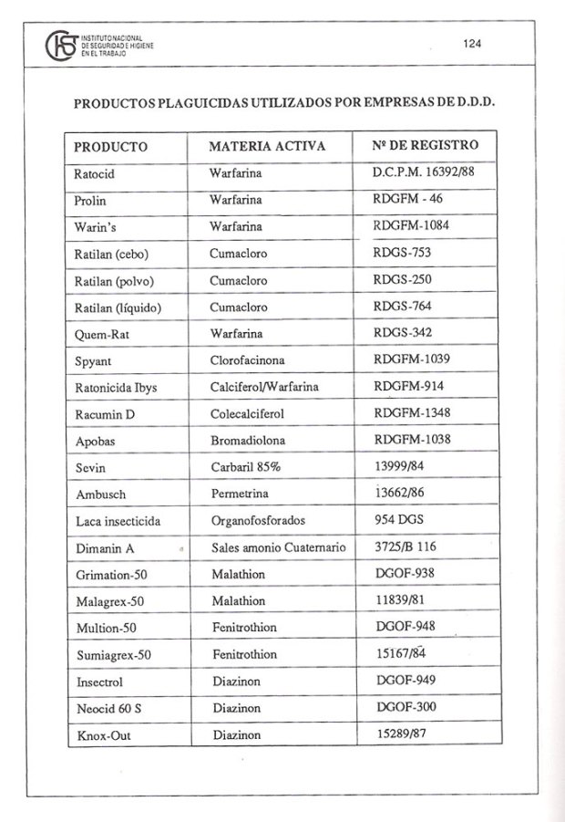 En octubre de 1993, el Instituto Nacional de Seguridad e Higiene en el Trabajo publicó el estudio ‘Evaluación de riesgos asociados al control ambiental de plagas urbanas’. El responsable de este estudio fue José Frutos García García, licenciado en Ciencias Biológicas por la Universidad Complutense (1973-19878) y experto en Salud Pública. Se circunscribe a la Comunidad de Madrid, pero es una buena radiografía para lo que sucedía en el resto de España. Para su elaboración partió de encuestas realizadas a empresas de control de plagas que operaban de una manera abierta.