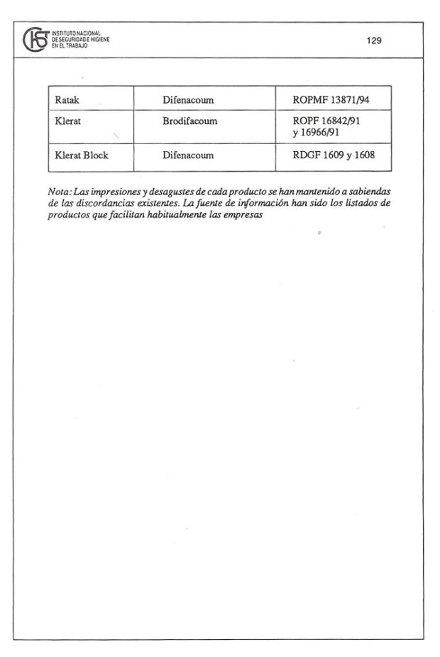 – García García, José Frutos. 1993. Evaluación de riesgos asociados al control ambiental de plagas urbanas. Instituto Nacional de Seguridad e Higiene en el Trabajo, Madrid. Colección Documentos Técnicos, No 72. 129 pp. ISBN 84-7425-389-6.
