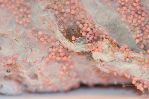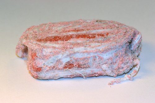 Un caso no habitual, pero muy interesante, es el de los insectos llamados tejedores que pertenecen al orden de los embiópteros (Embioptera). En esta entrada doy cuenta gráficamente de lo que me encontré recientemente en un cliente de Tarragona. En la imagen número 1, se pueden ver dos bloques de raticida de la marca Solo Blox de Bell Laboratories. Uno se encuentra tal y como el fabricante lo proporciona y otro, el de la izquierda, se encuentra envuelto en sedas segregadas por embiópteros. Si uno mira con detalle, entre las sedas hay diminutas bolitas adheridas (figuras 2 y 3). Se trata de excrementos que están teñidos por el pigmento rojo del raticida. Esto significa que los embiópteros encontraron una fuente de alimentación alternativa. En la imagen número 4, se puede ver al retirar las sedas que los emibiópteros se han alimentado de la masa compacta y han evitado las semillas. Este bloque raticida estaba en un portacebos de cartón que se encontraba en un registro eléctrico del suelo de una gasolinera.