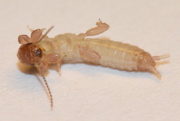 Los embiópteros se distribuyen principalmente por los trópicos. En la Península Ibérica tenemos citas de 6 especies pertenecientes a dos familias, Embiidae y Oligotomidae [1]. De hecho, parecen pocas, lo cual da a entender que es un taxón poco estudiado. La especie común en el noreste donde vivo es Embia ramburi, cuyos machos carecen de alas [2]. Tienen el cuerpo de un fuerte tono oscuro. Llegan a medir más de 1 centímetro de longitud. En cambio, los tejedores que he encontrado en el bloque de raticida, miden cerca de 6 milímetros y tienen el cuerpo marrón claro. Podría tratarse de una especie del género Haploembia, familia Oligotomidae. Según los manuales, H. solieri está extendida por el sur de Europa [2].