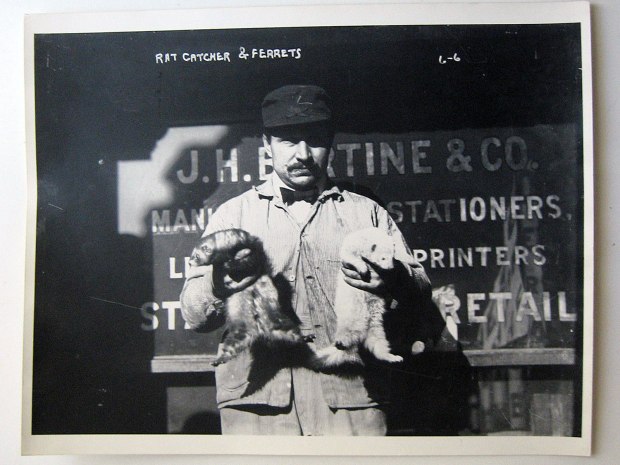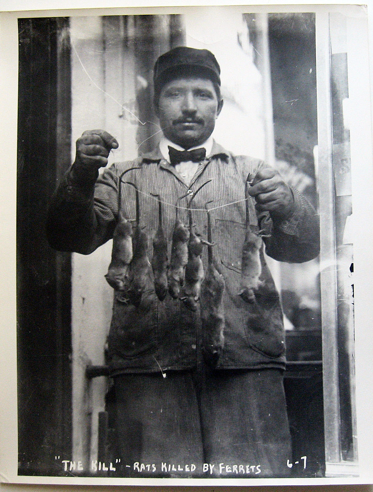 Los hurones fueron muy empleados antaño en Inglaterra y Estados Unidos para realizar desratizaciones. El uso del hurón era un valor añadido que ofrecían algunos cazadores de ratas (ratcatchers en inglés) para la desratización en interiores. Con ello se evitaba el uso de venenos y el peligro de que una rata quedara muerta en un lugar inaccesible de la cual luego pudieran emanar olores de descomposición. Desconozco si en España se llegaron a usar hurones. El ratcatcher se valía además de perros, jaulas, cepos y redes. En Inglaterra, además de eliminar las ratas de una casa, el ratcatcher cazaba ratas para las famosas luchas con perros llamadas rat pits.