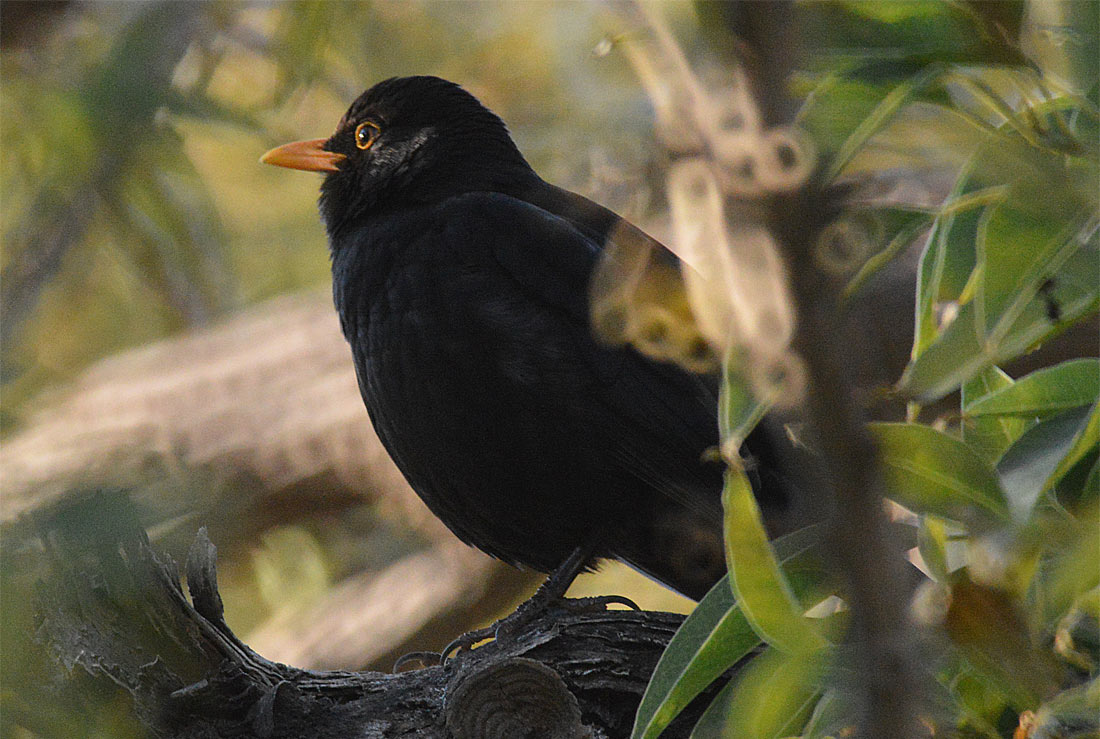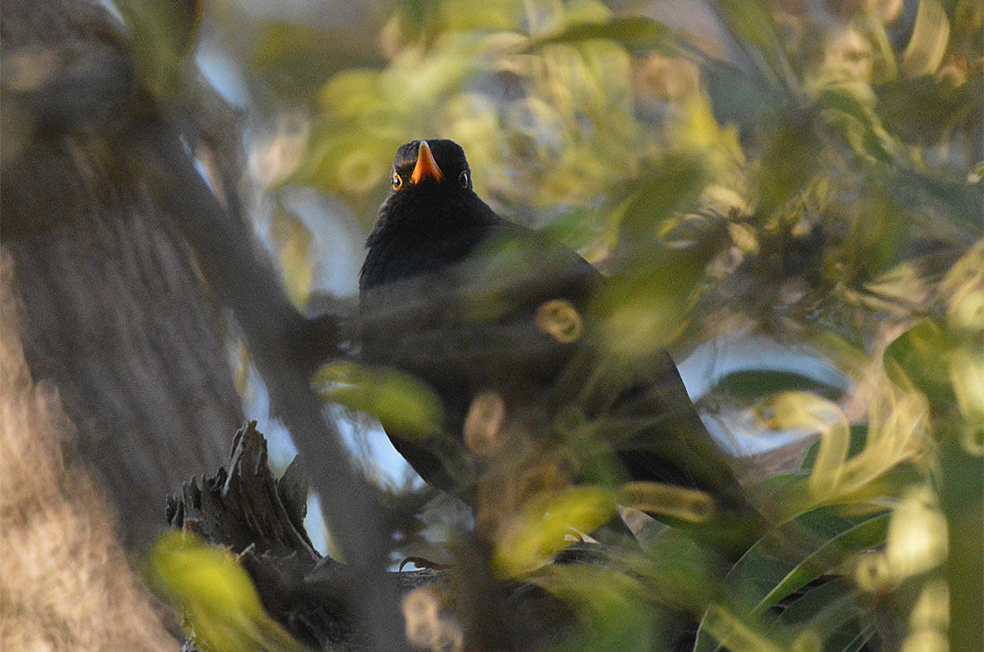 Foto 1. Un mirlo común pensaba que estaba bien escondido. Yo me puse bajo un árbol y sin quererlo lo encontré./ Desinsectador 01-2014.