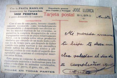 He encontrado un producto de la década de 1920 llamado Pasta Madelon. Se trata de un cebo insecticida para cucarachas. En la imagen número 1, se puede ver el anuncio publicado en el periódico ABC el 13 de junio de 1923. El anuncio era modesto, pero directo, ya que invitaba al público a utilizar el producto. En caso de que no funcionara, no le devolvían el importe del producto, como era usual en la publicidad de la época, sino que le daban 1.000 pesetas, una cantidad elevada en la época.
