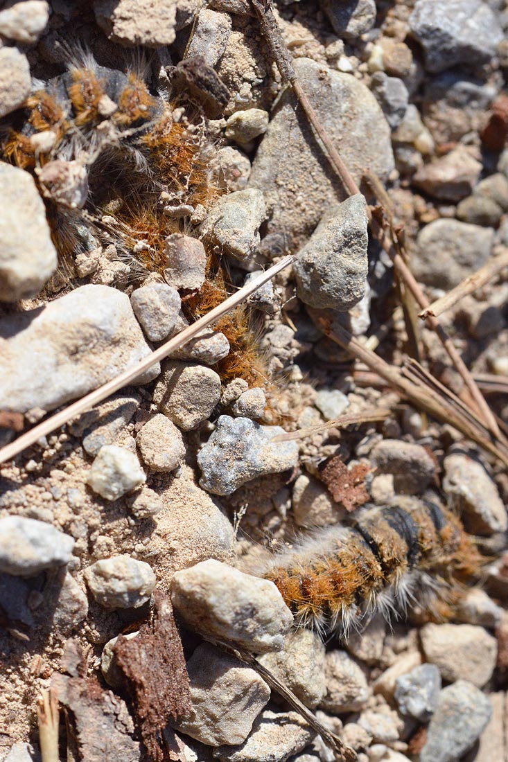 Esta mañana he estado viendo unas orugas que se intentaban enterrar. Como ya he comentado, encuentro estas orugas muy bellas. Las fotografías muestran un bonito color rojizo. En la fotografía número 3, se puede ver la cabeza de una oruga. Parece dura. Es con esta con la que escarba un agujero en el suelo. En la fotografía número 4, se puede ver una oruga que tiene ya metida la cabeza en el suelo. En las siguientes fotografías, se ven orugas a medio enterrar. Para mala suerte de estas, eligieron un suelo bastante duro. Según parece, se entierran a unos 15 centímetros de profundidad. Pienso que lo tienen difícil. Si lo consiguen, en estado de pupa estarán unos meses hasta verano. Al emerger en forma de polilla, estas vivirán pocos días. Las hembras depositarán los huevos en la parte superior de los pinos para asegurar la comida de las larvas. Vamos a ver si este verano puedo atrapar alguna mariposa de la procesionaria del pino.