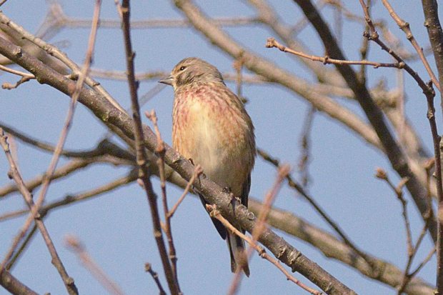 Ayer estuve en la Vall de Lord, Lérida. Allí pude ver junto al río Cardener varias aves de la familia de los fringílidos (Fringillidae). Vi jilgueros (Carduelis carduelis), verderones (Carduelis chloris) y bastantes pardillos comunes (Carduelis cannabina). Probablemente, el pardillo debe su nombre al color pardo de su plumaje. Pero no todos es pardo, porque el macho se diferencia de la hembra por tener plumas rojas en el pecho. Además, cuando acaba el invierno, el macho intensifica su plumaje rojo y le aparecen plumas de este color en la frente. En la fotografía número 1, se puede ver un macho al que ya le han aparecido plumas rojas sobre la frente. Entramos en la época del cortejo y el macho debe ponerse atractivo. El pardillo está presente en toda Europa. Es un ave abundante en la Península Ibérica. Mide entre 12 y 14 centímetros. Es parecido en aspecto al jilguero. Como los otros fringílidos del género Carduelis tiene un canto bello. Desgraciadamente, es capturada como ave de jaula.