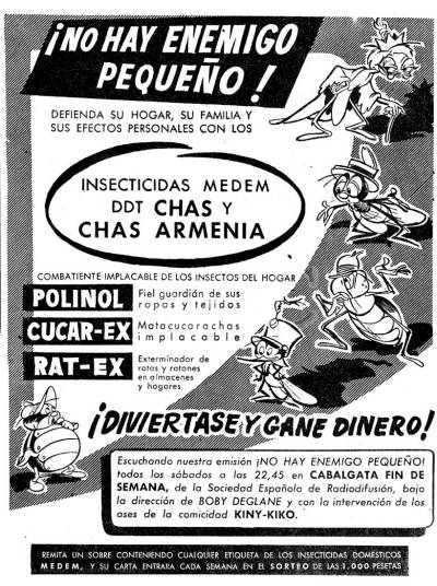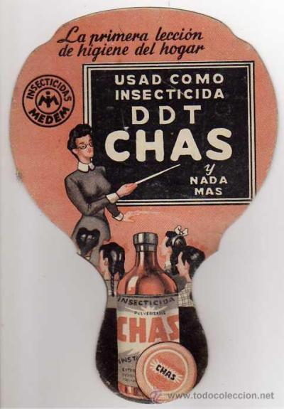 La industria de insecticidas para el hogar tuvo su punto fuerte de crecimiento a partir de mediados de la década de 1940. Entonces hicieron su aparición los insecticidas organoclorados como el DDT y el HCH. El público empezó a consumir insecticidas que combatían eficazmente las plagas. Se puso esperanza en estos. Reflejo de esto es que durante la dos siguientes décadas se destinó mucho dinero a publicidad. Y en las hemerotecas se encuentran numerosos anuncios. Aparecieron marcas que hoy en día todavía continúan en activo como Fogo (Ceifa), ZZ (Zeltia), Cucal (Cruz Verde), Polil (Cruz Verde), Orion (AC Marca), Cuchol (Insecticidas Cóndor), etc.