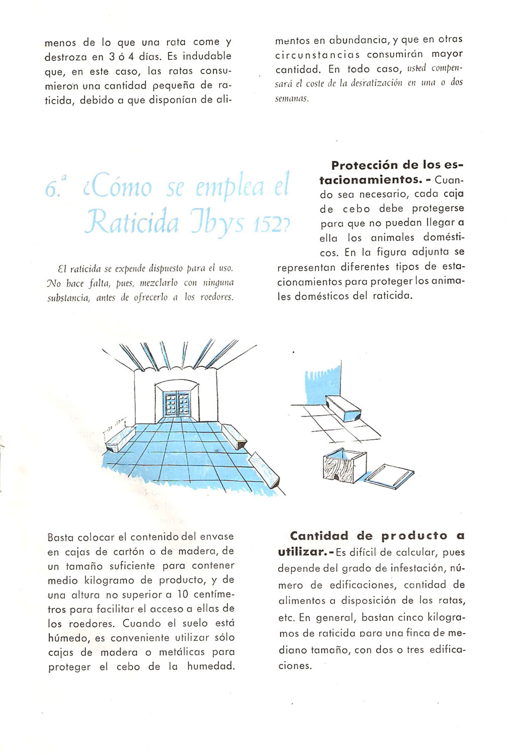 El documento está escrito para solventar dudas. Hay que entender que este raticida fue de los primeros en estar formulados con una sustancia anticoagulante, la cual era una importante novedad, ya que cambiaba la metodología de la desratitzación. No era un raticida de acción aguada, sino crónica, es decir lenta. Y además, era un raticida que no creaba el recelo de ratas y ratones hacia su consumo. El documento no estaba dirigido para el público en general, sino para explotaciones ganaderas, fábricas, industria alimentaria, etc. IBYS 152 no salió al mercado a un precio económico. Sin embargo, su uso lo hacía muy rentable.