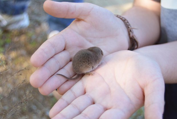 Paseando ayer por el Delta del Llobregat, me encontré con una musaraña común (Crocidura russula). Estaba junto al camino dando vueltas en círculo. Me acerqué y no huyó de mí. Parecía enferma. La cogí y le hice algunas fotos. En los costados tenía lo que parecía alguna perforación. Ni idea de lo que le pasaba. Pero no es normal que se deje coger un animal salvaje.
