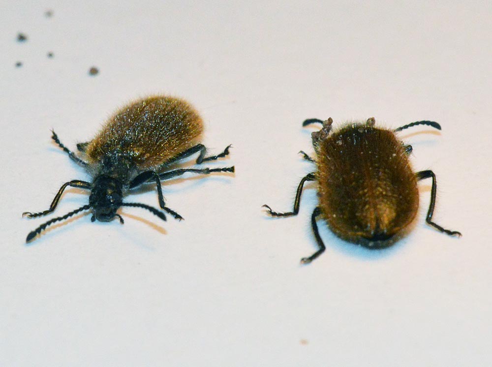 Hace unos días me encontré un par de ejemplares de escarabajo lanudo, Lagria sp. Existen varias especies similares del mismo género. No son fáciles de distinguir una de otra. La más abundante es Lagria hirta. Deben su nombre al par de élitros cubiertos de pelos. Estos escarabajos son abundantes en Europa. Los encontraremos en zonas con vegetación baja de cuyos brotes verdes se alimentan. Los ejemplares de las fotografías miden unos 12 milímetros de cabeza a extremo del abdomen.