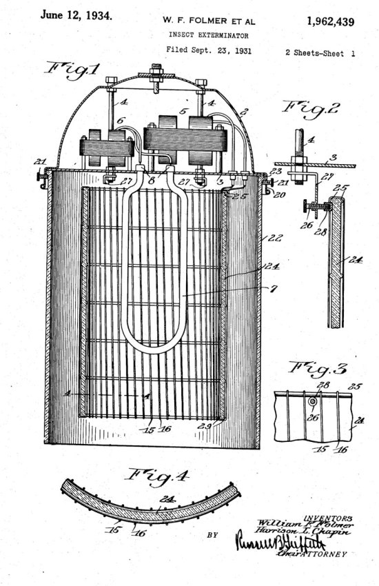 [8] US Patent 1962439. Insect exterminator. Patente 12-06-1934. Enlace: freepatentsonline.com/1962439.pdf