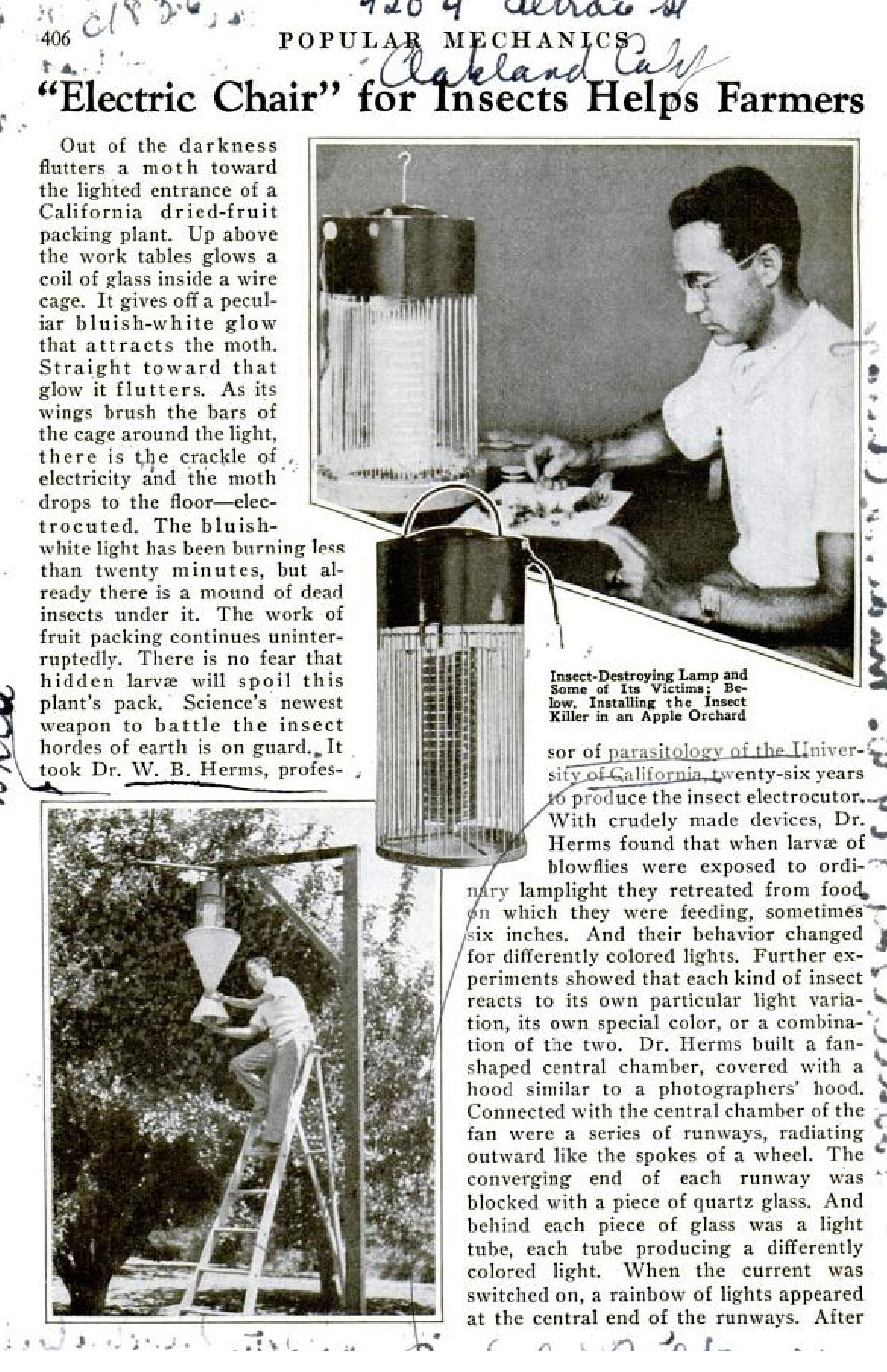 [5] Electric Chair for Insects Helps Farmers. Popular Mechanics, marzo de 1934, pp. 406-407.