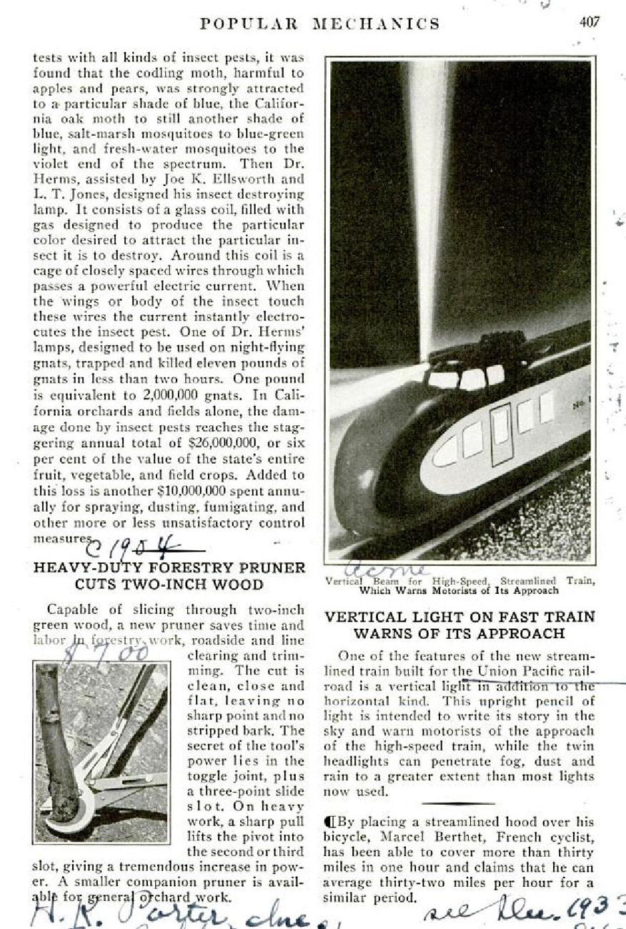 [6] Ligths turn battle against insect armies. Popular Mechanics, diciembre de 1938, p. 840.