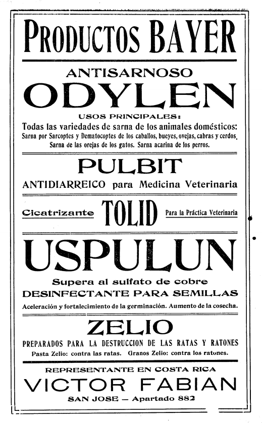 Fig 6. Anuncio en revista mensual ‘Escuela de Agricultura’, Tomo VI, No 4, 1934, San José, Costa Rica.