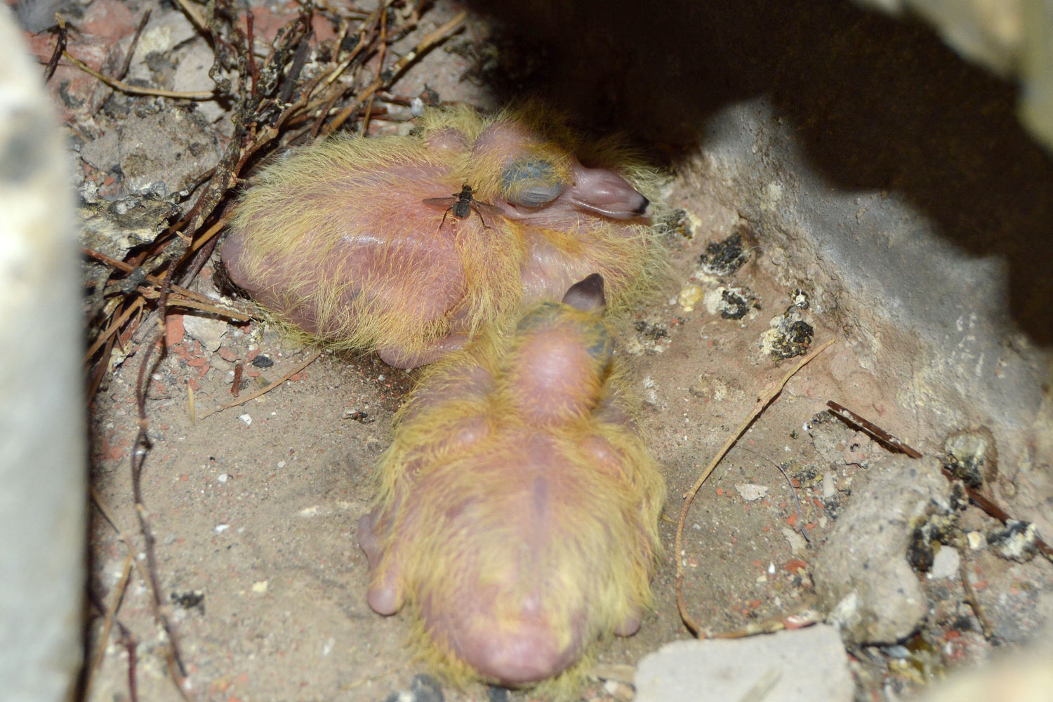 En esta entrada publico imágenes de detalle de un ejemplar de mosca de las palomas (figuras 1 a 3) y de un caso de retirada de palomas (figura 4 a 15). En este caso, las palomas habían ocupado una buhardilla donde se ubicaban los depósitos de agua de un edificio industrial. Había una ventana abierta por la que accedían las palomas. Encontré dos nidos de paloma. Uno con los pollos nacidos de hacía pocos días y otro con los huevos sin eclosionar. Los adultos salieron volando. Apunto que este hipobóscido es muy interesante. Especialmente adaptado para su vida parasitaria. Actúa como vector de patógenos entre palomas. También parasita otras especies de colúmbidos (Columbidae).