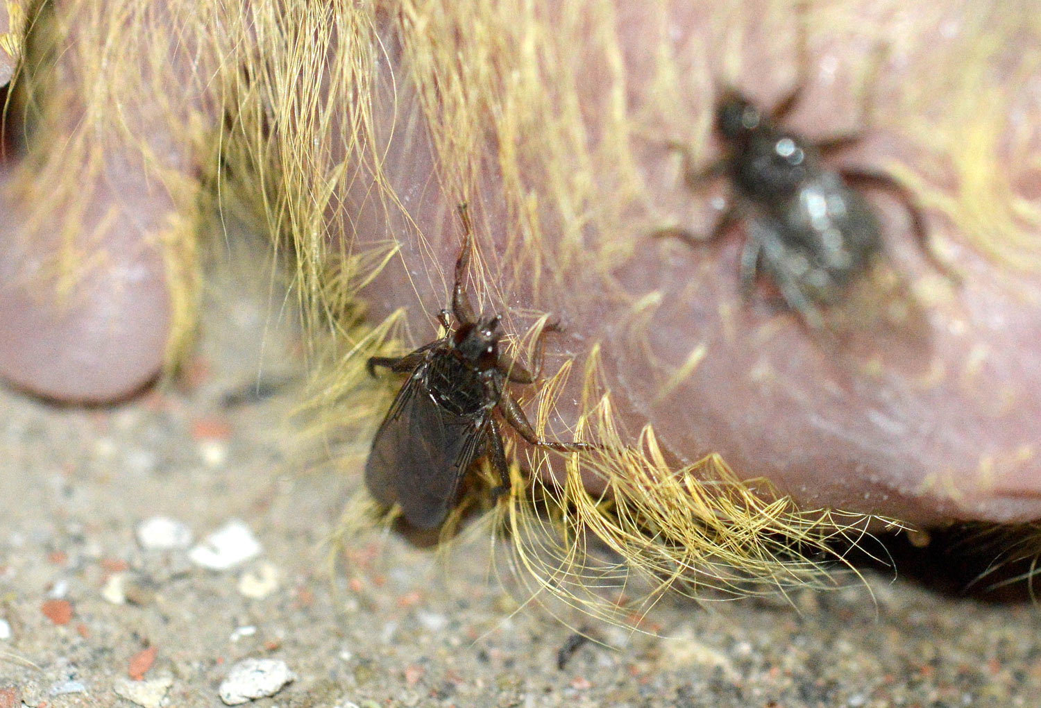 Buenas noches, hoy mi gato atrapó una paloma, estaba a punto de adopatarla, cuando vi abajo de sus alas y salieron como tres de esas moscas y habían otros parásitos en sus alas, la dejé ir y maté a una de las moscas, pero dos o tres se echaron a volar y me da miedo que se le peguen a mis perritas, gato, gallo o a nosotros. ¿Cómo limpio por si quedó alguna en la casa?